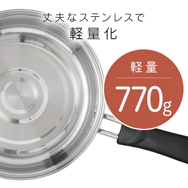 ●商品サイズ(cm)幅約37.5×奥行約19.5×高さ約14.5●商品重量約770g●寸法18cm●満水容量2.3L●材質本体:ステンレス鋼(クロム18%)(底の厚さ0.5mm)蓋:強化ガラス、フェノール樹脂●対応熱源IH200V、IH100V、ガスコンロ、オーブン、ラジエントヒーター、その他の電気ヒーター(検索用:なべ 鍋 片手 単層 ステンレス IH対応 ガス火対応 )★