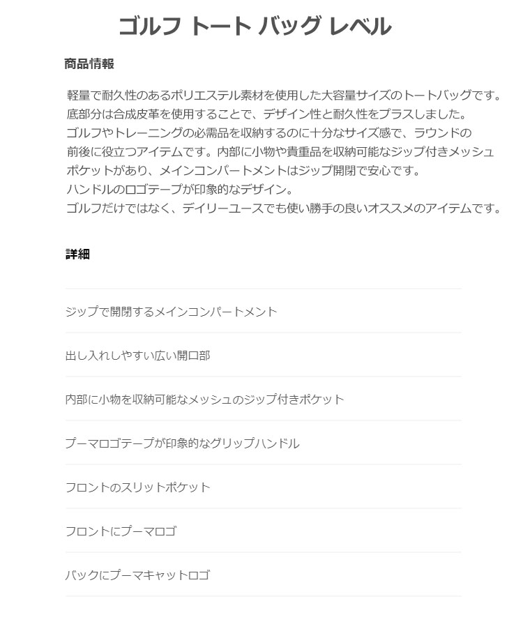 【日本正規品】2020年モデル PUMA GOLF プーマ ゴルフ 867790 TT レベル トートバッグ 【U10】